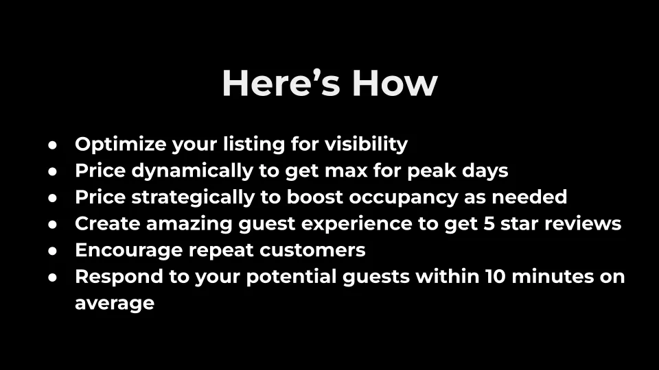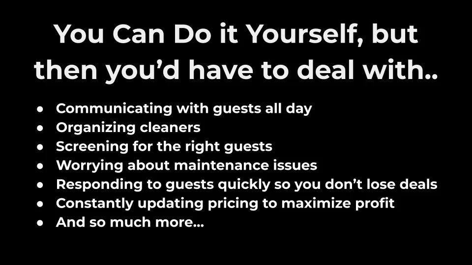 Make more with optimized pricing and proven strategies, save time, have peace of mind with a full local dedicated team serving your guest and growing your listing